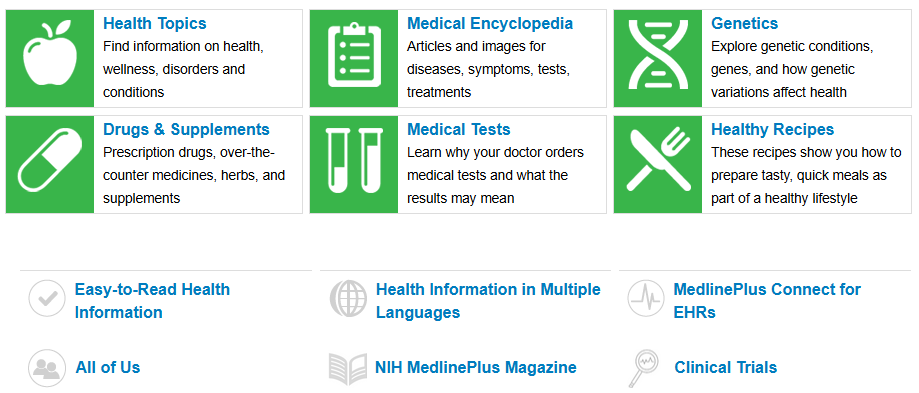 MedlinePlus is an online health information resource for patients and their families and friends. It is a service of the National Library of Medicine (NLM), the world’s largest medical library, which is part of the National Institutes of Health (NIH).